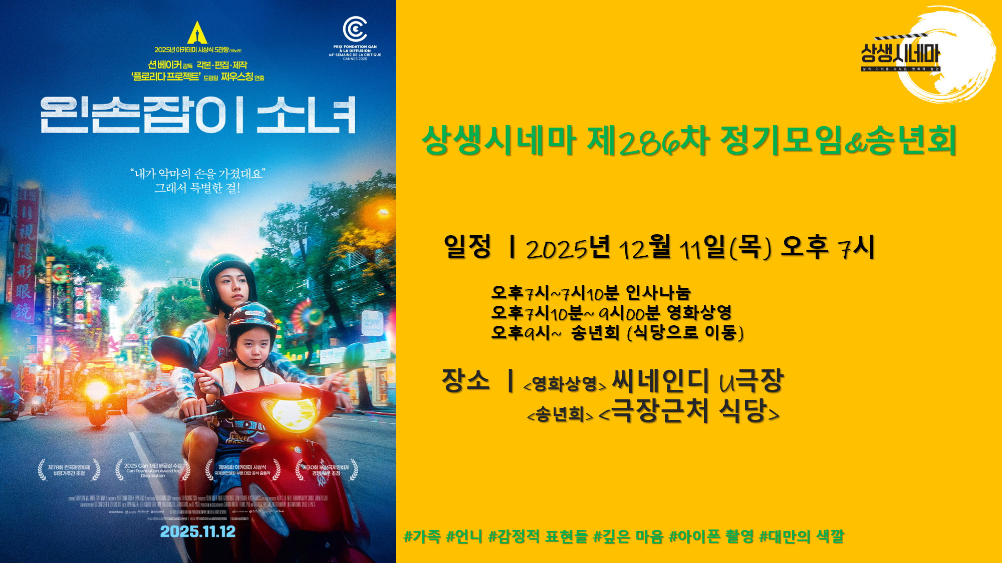상생시네마 제286차 정기모임_왼손잡이 소녀_Left-Handed Girl, 2025