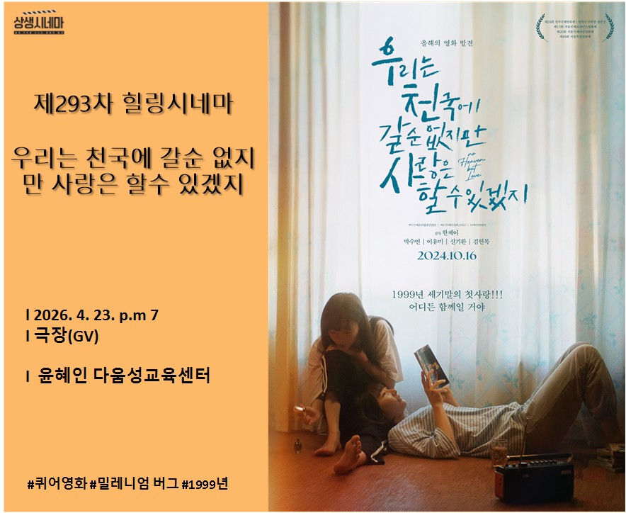 2026년 3월 19일 오후 7시 시네마 큐레이터 회의를 기준으로 힐링시네마 영화 라인업을 선정하였습니다.