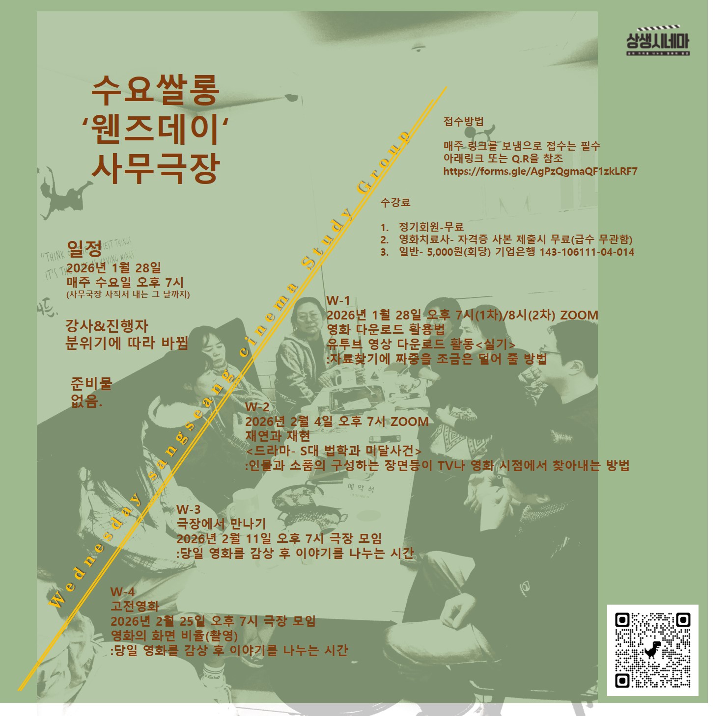 매주 수요일 오후 7시 ZOOM과 극장에서 만나 영화의 교류의 장을 펼치는 모임을 통해 영화 친밀감 공유 누구와 볼 것인가? 어떻게 볼 것 인가?