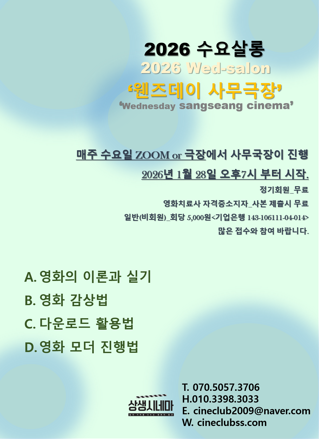 매주 수요일에 만나는 이 자리는 상생시네마의 사무국장의 영화적 정신세계를 만날수 있는 자리